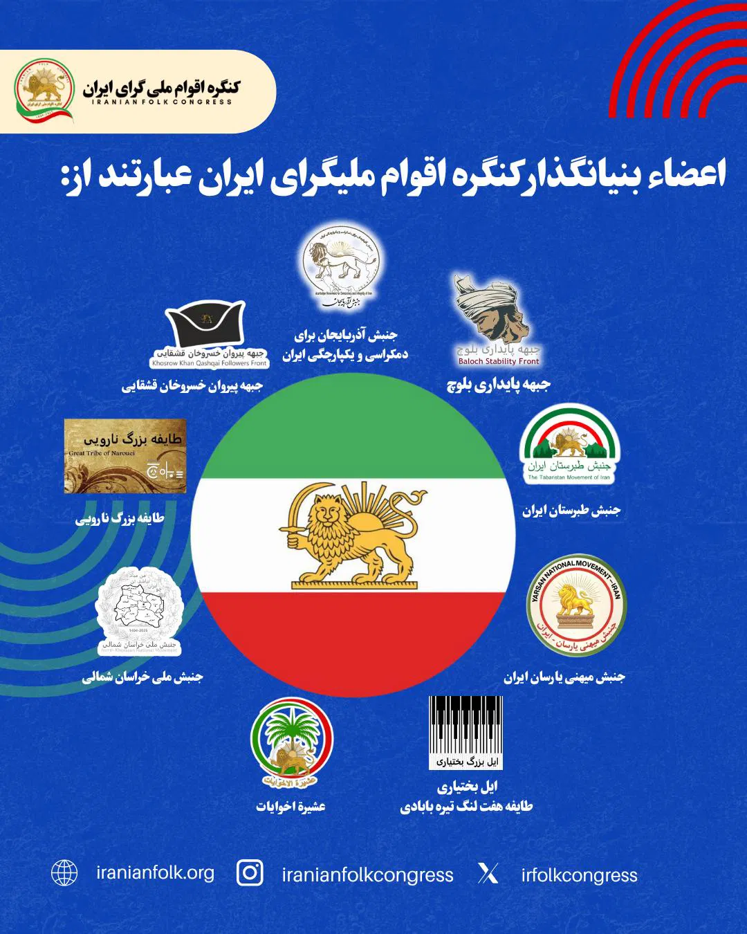 بیانیه اعلام موجودیت "کنگره اقوام ملیگرای ایران" بە نام ایران و آزادی ما، جمعی از نمایندگان ایلات و اقوام کهن این سرزمین، با آگاهی از مسئولیت تاریخی خود در برابر ملت بزرگ ایران و با درک ضرورت همبستگی ملی، تشکیل "کنگره اقوام ملیگرای ایران" را اعلام میداریم. در طول قرنها، اقوام ایرانی از کرد، لر، بلوچ، ترکمن، آذری، عرب، گیلک، مازنی و فارس و دیگر تبارهای شریف این سرزمین همواره ستونهای استوار فرهنگ، تاریخ و هویت ایران بودهاند. با اینحال، نبود جریانی فراگیر که بتواند در چارچوبی ملی و متحد، خواستههای مشروع اقوام ایرانی را بیان و پیگیری کند، خلائی جدی در فضای اجتماعی و سیاسی کشور پدید آورده است. کنگره اقوام ملیگرای ایرانی بر این باور است که: